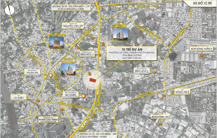 Phía đông giáp: đường Đại Lộ Bình Dương