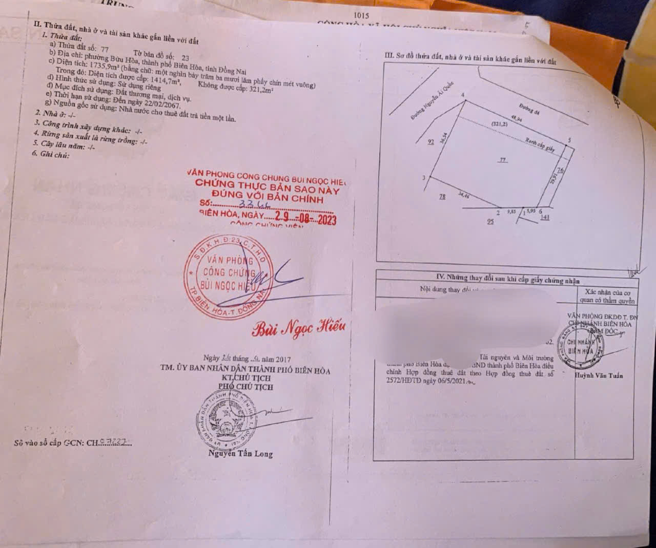 • TMDV (1735m2, hạn sử dụng: 2/2067, thuê đất trả tiền 1 lần)